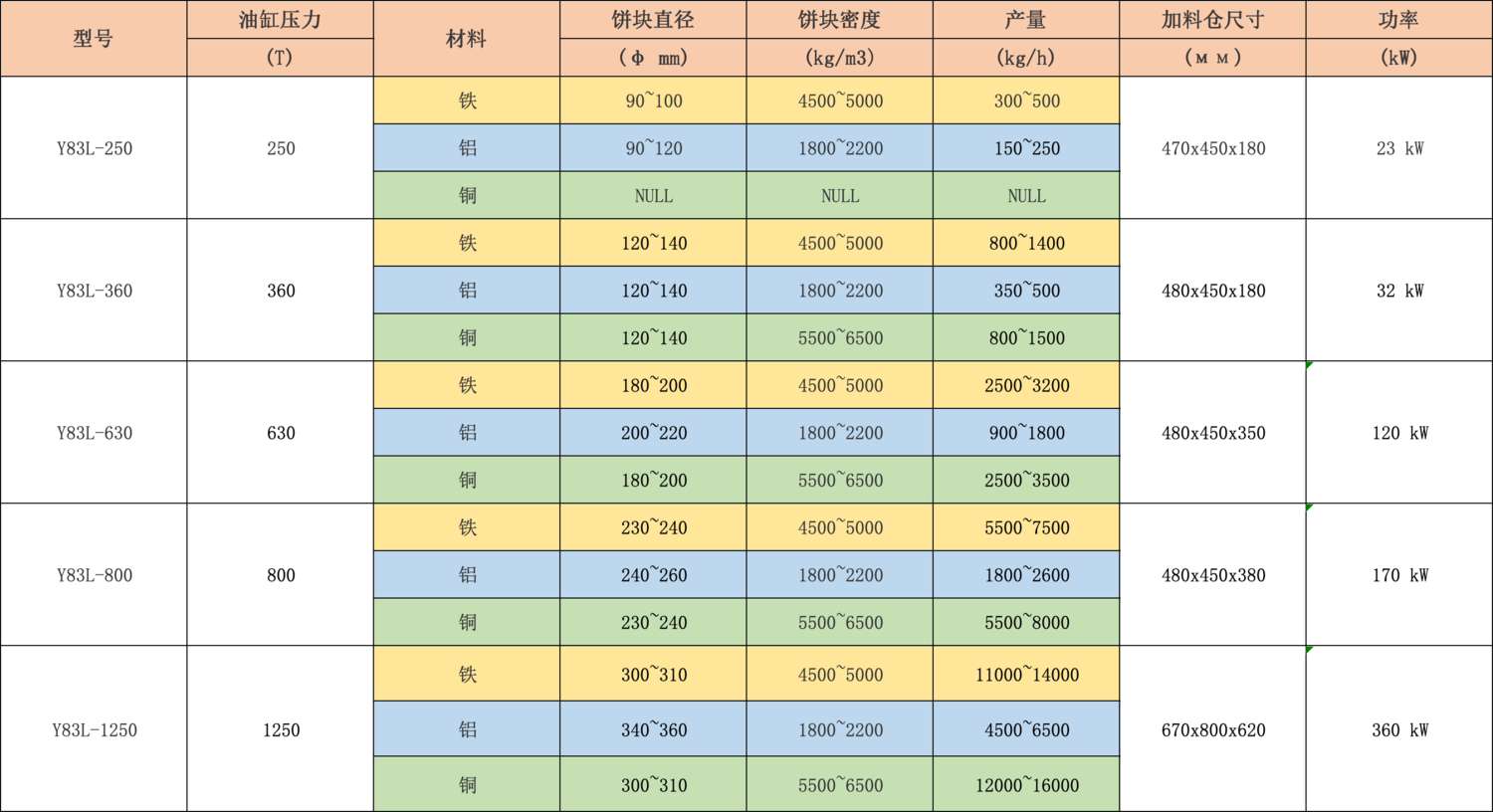 Y83系列立式金屬屑餅機(jī) Y83系列金屬屑?jí)簤K機(jī)(屑餅機(jī)),適用于鋁合金型材廠、鑄鋼廠、鑄鋁廠、鑄銅廠,將各種金屬屑(鐵屑、銅屑、不銹鋼屑、鋁屑等)、粉粒狀金屬粉(鐵粉、鋁粉、銅粉、鉛粉等)壓塊回爐,替代廢鋼、生鐵、鋁錠、廢銅作原材料,可減少燒損。該設(shè)備能將粉粒狀的鑄鐵屑、鋼屑、銅屑、鋁屑等直接冷壓成3~6公斤的圓柱餅塊,以便于運(yùn)輸、投爐、整個(gè)過程不需加溫、添加劑,或其他工藝。鑄鐵屑?jí)褐坪竺芏瓤蛇_(dá)5~6T/m3。該產(chǎn)品還可根據(jù)客戶要求,采用國(guó)產(chǎn)或進(jìn)口液壓、電氣元件,配自動(dòng)加料、稱重等裝置。 Y83系列金屬屑?jí)簤K機(jī)以“科技以人為本”的設(shè)計(jì)理念,真正意義上實(shí)現(xiàn)了高性能高產(chǎn)量、低故障率、低能耗、整機(jī)一人操作,是目前最先進(jìn)的金屬屑?jí)簤K機(jī)。 產(chǎn)品特點(diǎn) 1、本機(jī)采用液壓傳動(dòng),高度集成閥塊,超大流量通徑,使系統(tǒng)壓力損失少,密封性能好。 2、插裝閥、電液比例閥的使用和獨(dú)特的油路設(shè)計(jì)使液壓系統(tǒng)完美無缺,即使在長(zhǎng)期大負(fù)荷的情況下工作,系統(tǒng)也不會(huì)出現(xiàn)力不從心的現(xiàn)象。 3、系統(tǒng)設(shè)計(jì)預(yù)泄荷裝置,徹底消除了液壓沖擊。 4、先進(jìn)的快速裝置,確保您的班產(chǎn)量。 5、電器部分采用進(jìn)口PLC全自動(dòng)控制系統(tǒng),抗干擾能力強(qiáng)、故障率低。 技術(shù)參數(shù) 圖片展示 工作視頻 客戶現(xiàn)場(chǎng)